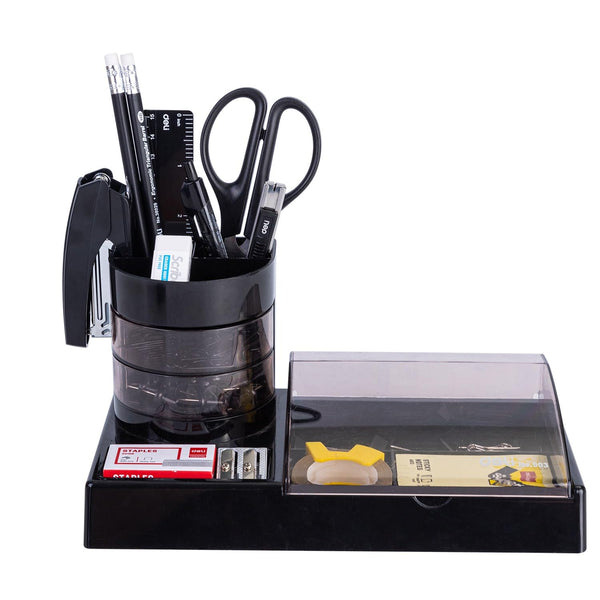 Deli W38254 Rotary Desk Organizer 5 Compartments, Black, Pack of 1 - Color May Vary