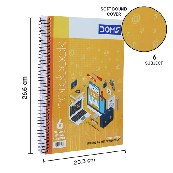 Doms 57GSM 6 Subject Ruled Digital World Series Notebook - 300 Pages, Pack of 1