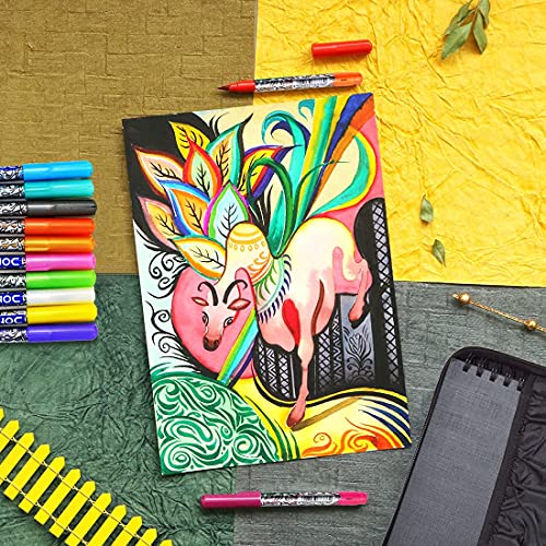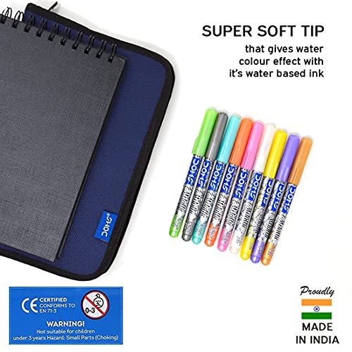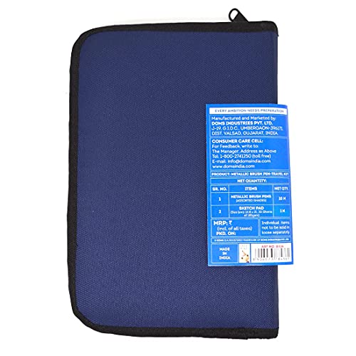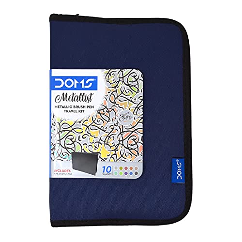 Doms Metallist Series Metallic Brush Pen Travel Kit with Zip Case (10 Assorted Shades of Metallic Brush Pen | 1 Sketch Pad)