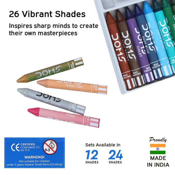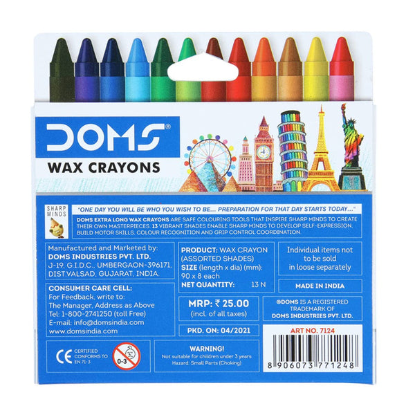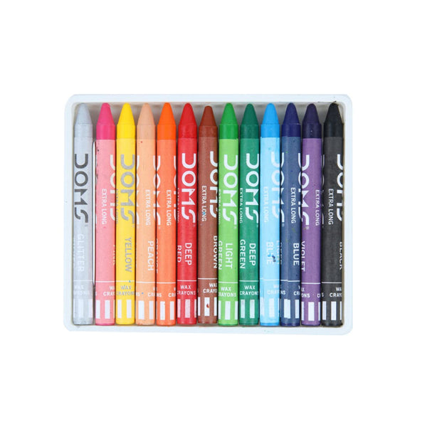 Doms Non-Toxic Extra Long Wax Crayon Set In Cardboard Box - 12 Assorted Shades