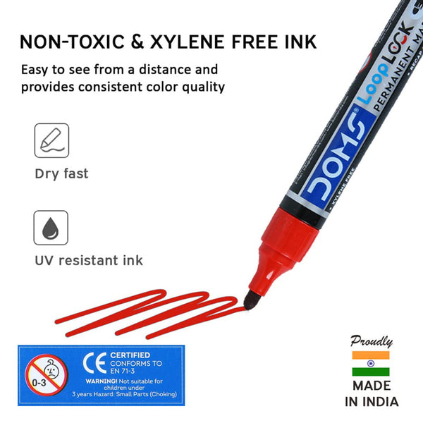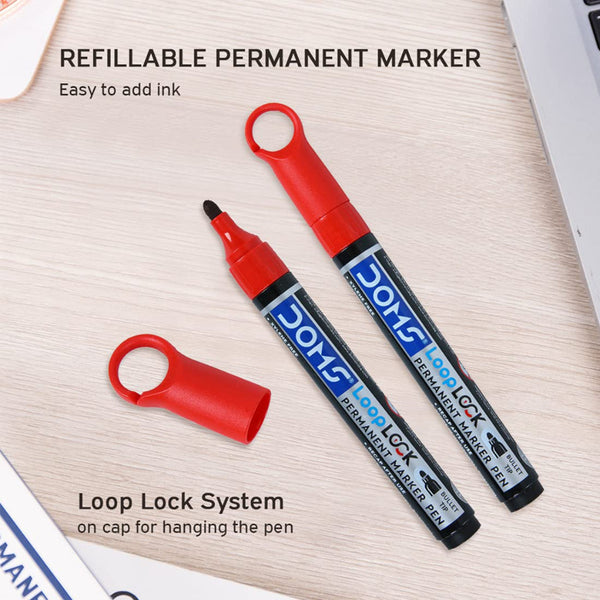Doms Refilo Non-Toxic Hi-Tech Refillable Loop Lock Permanent Marker Pens