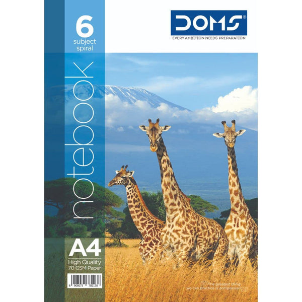 Doms 70GSM A4 6 Sub Single Line Book Spiral Bound Wildlife Animals Series Exercise Note Book - 300 Pages, Pack of 1