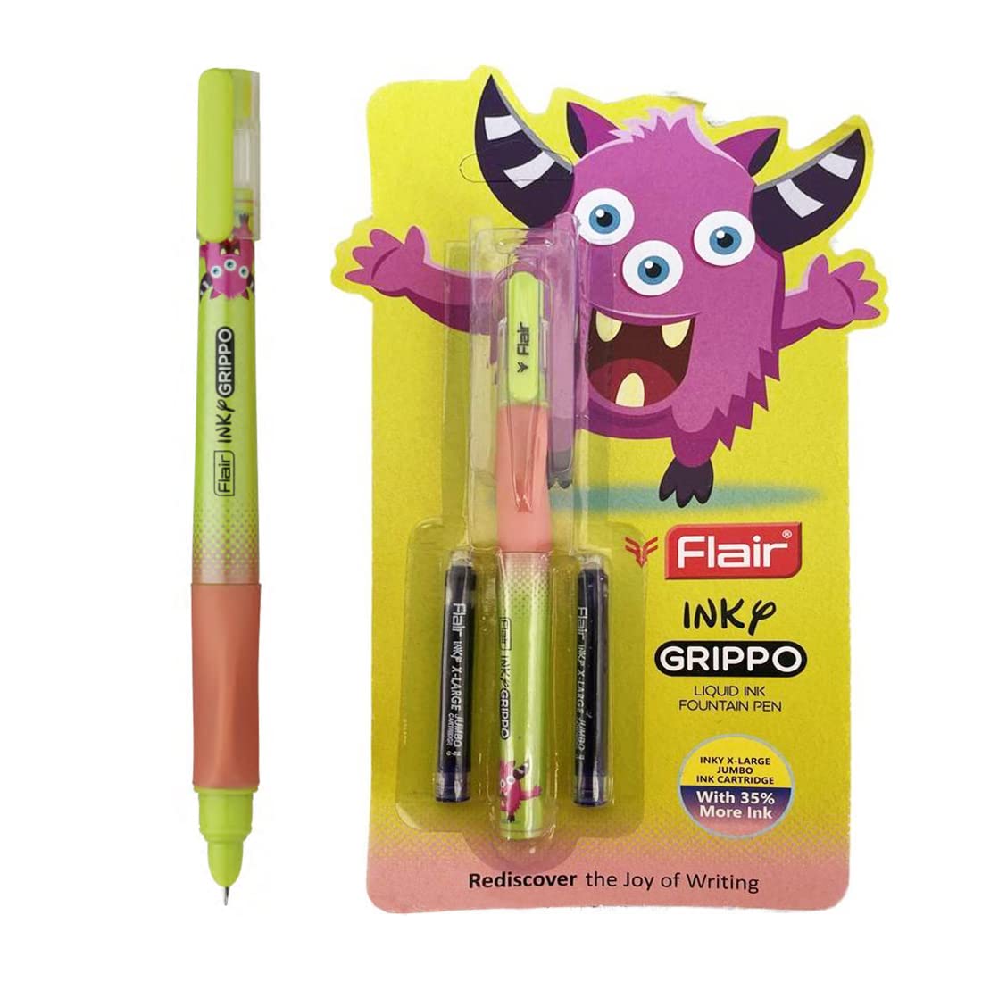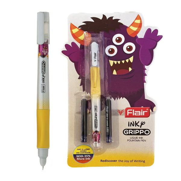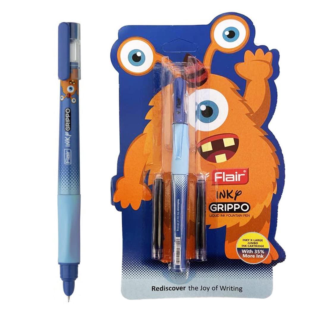 FLAIR Inky Series Grippo Liquid Ink Fountain Pen Blister Pack , Blue Ink