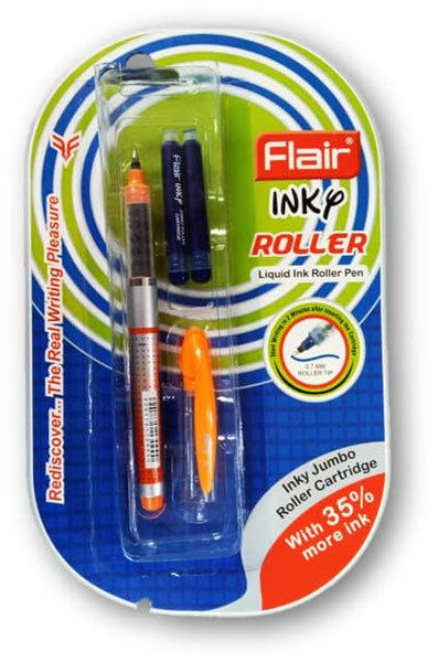FLAIR Inky Series Liquid Ink Roller Pen Blister Pack , Blue Ink, Pack Of 2