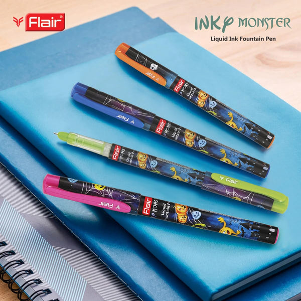 FLAIR Inky Series Monster Liquid Ink Fountain Pen Blister Pack , , Blue Ink