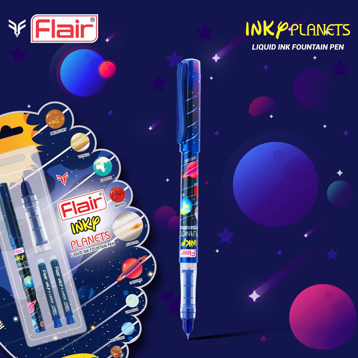 FLAIR Inky Series Planets Liquid Ink Fountain Pen Blister Pack , Blue Ink
