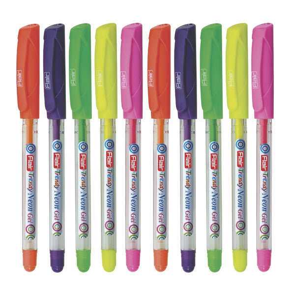 Flair Trendy Neon 10 Pcs Gel Pen, Multicolour