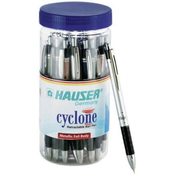 Hauser Cyclone Retractable 0.7mm Ball Pen Jar Pack - Blue Ink, Pack of 25