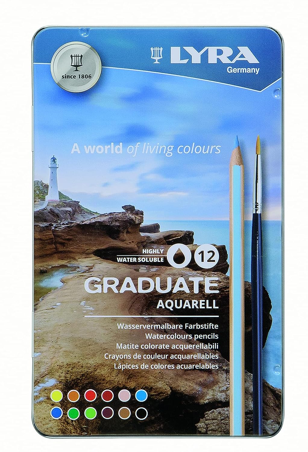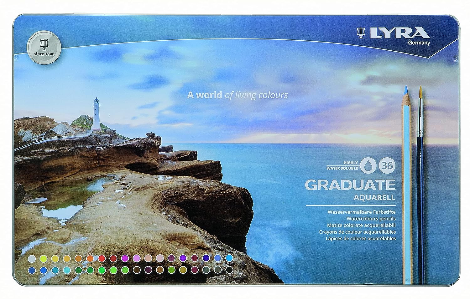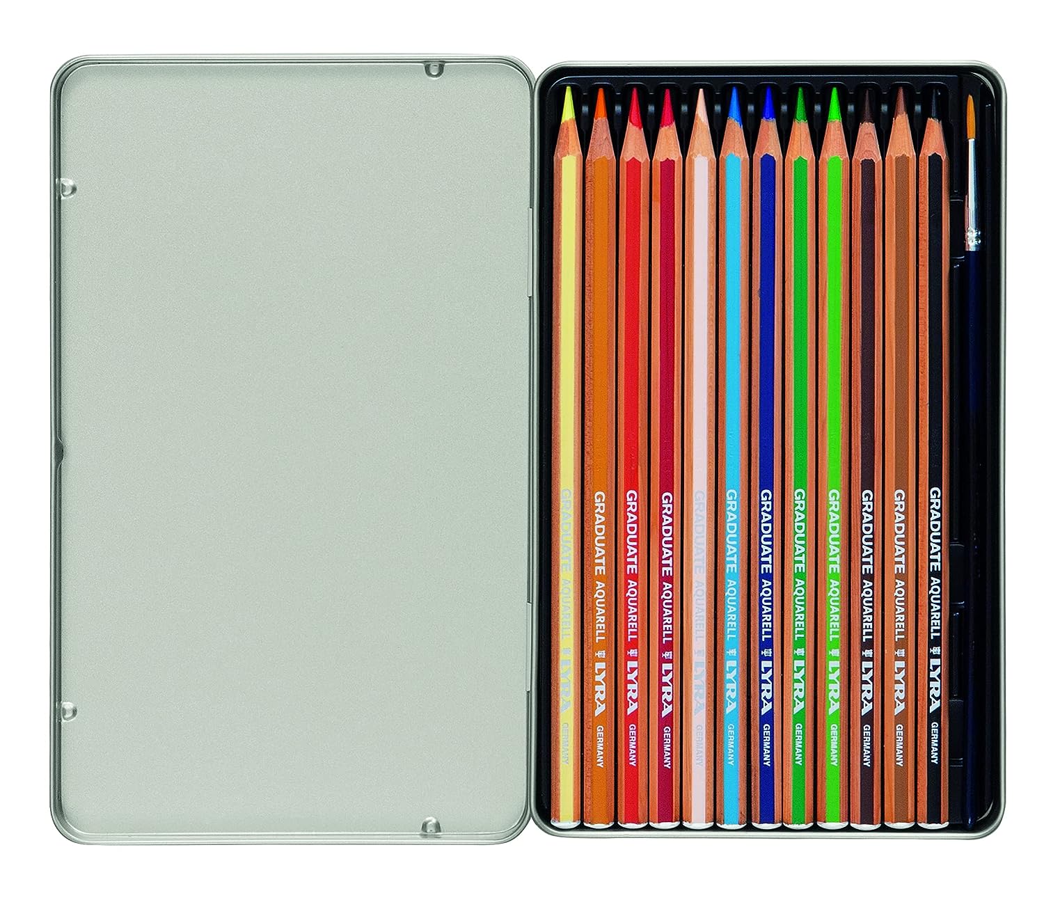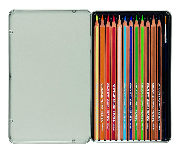 Lyra Graduate Aquarell Watercolour Art Pencil Set with Paintbrush & Metal Case - Assorted