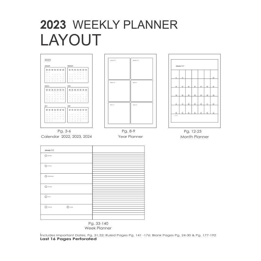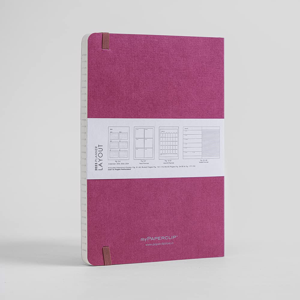 Mypaperclip 2023 Weekly Planner, Section Thread Bound, Hand Drawn Paper Back , A5 (148 X 210 Mm, 5 X 8.27 In), 2023-Weekly_Planner-D1_Raspberry