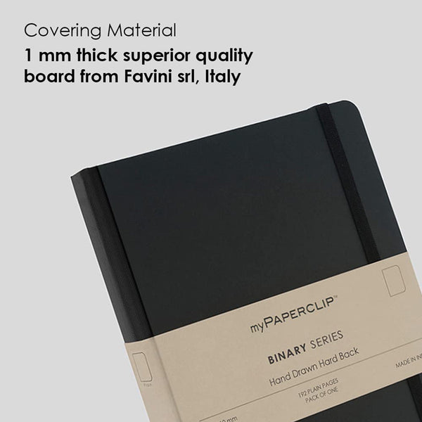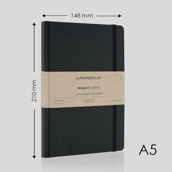 Mypaperclip Binary Series Notebook, Section Thread Bound, Hand Drawn Hard Cover, A5 (148 X 210 Mm, 5.83 X 8.27 In.) Plain, Bsh192A5-P Black Hard Cover, Black Spine