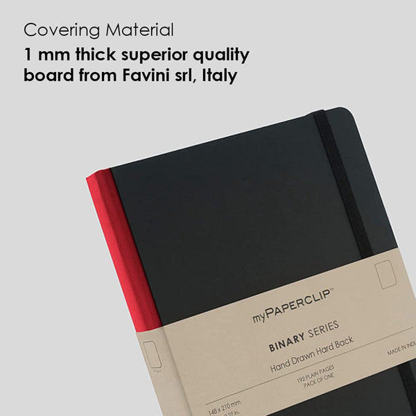 Mypaperclip Binary Series Notebook, Section Thread Bound, Hand Drawn Hard Cover, A5 (148 X 210 Mm, 5.83 X 8.27 In.) Plain, Bsh192A5-P Black Hard Cover, Red Spine