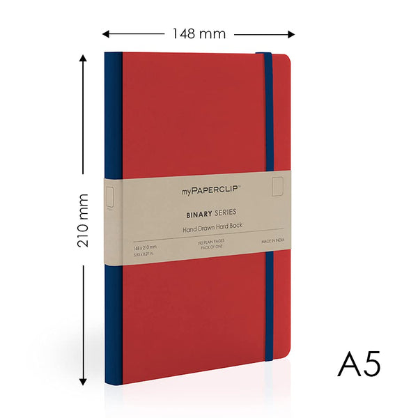 Mypaperclip Binary Series Notebook, Section Thread Bound, Hand Drawn Hard Cover, A5 (148 X 210 Mm, 5.83 X 8.27 In.), Plain, Bsh192A5-P Red