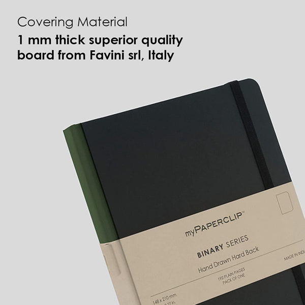 Mypaperclip Binary Series Notebook, Section Thread Bound, Hand Drawn Hard Cover, A5 (148 X 210 mm, 5.83 X 8.27 In.) Ruled, Bsh192A5-R Black Hard Cover, Green Spine