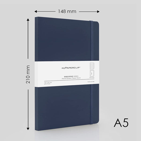 Mypaperclip Executive Series Notebook, A5 (148X 210Mm, 5.83 X 8.27 In.) Ruled, Esx192A5-R Blue