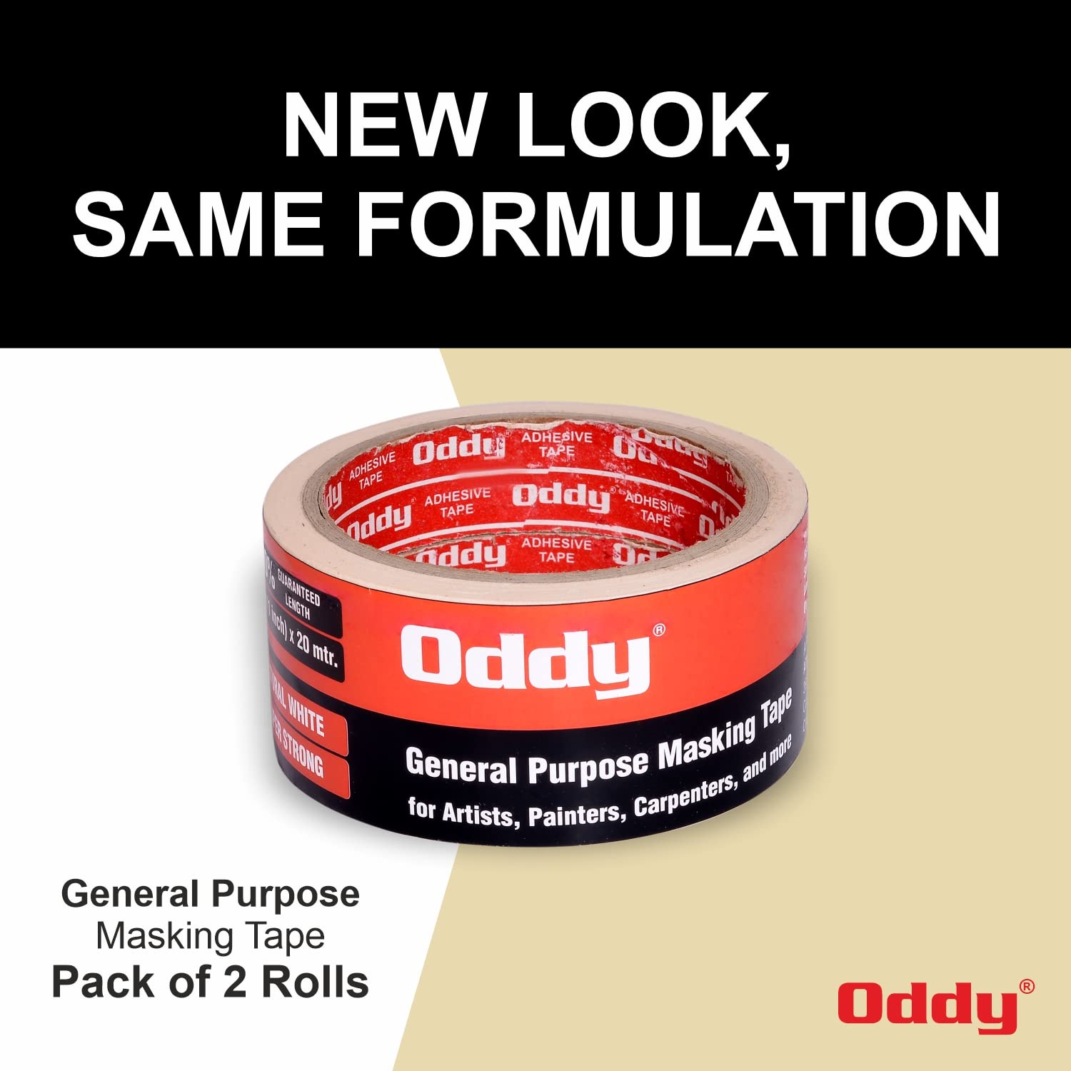 Oddy Masking Tape for Painting for Artists, Painters & Carpenters | 24mm X 20m Pack of 2 Rolls | Paper Tape for Acrylic Painting, Water Colour, Pastels Drawing, Wall Painting