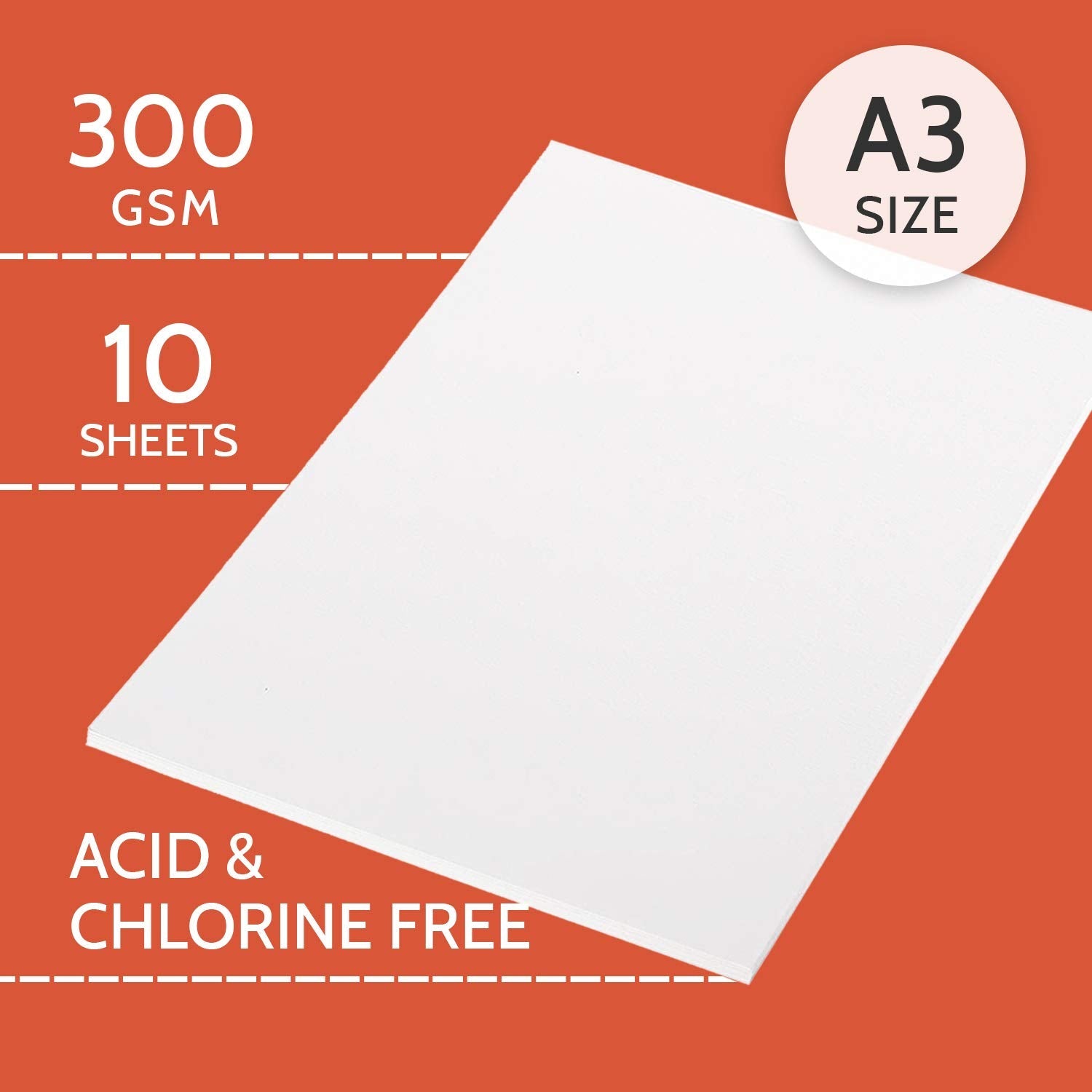 PaperPep Artists' Acrylic Paint Paper 300GSM Cold Pressed A3 Pack of 10 for Acrylic, Watercolour, Gouache, Ink, Wet & Mixed Media, Art Painting, Drawing for Artists' & Amateurs