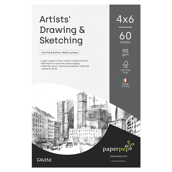 PaperPep Artists' Sketching & Drawing Paper 90GSM 4"X6" Pack of 120 for Sketching & Drawing with Pencil, Charcoal, Graphite, redchalk Pastel, Chalk, Oil Pastel & Wax Crayon for Artists' & Amateurs