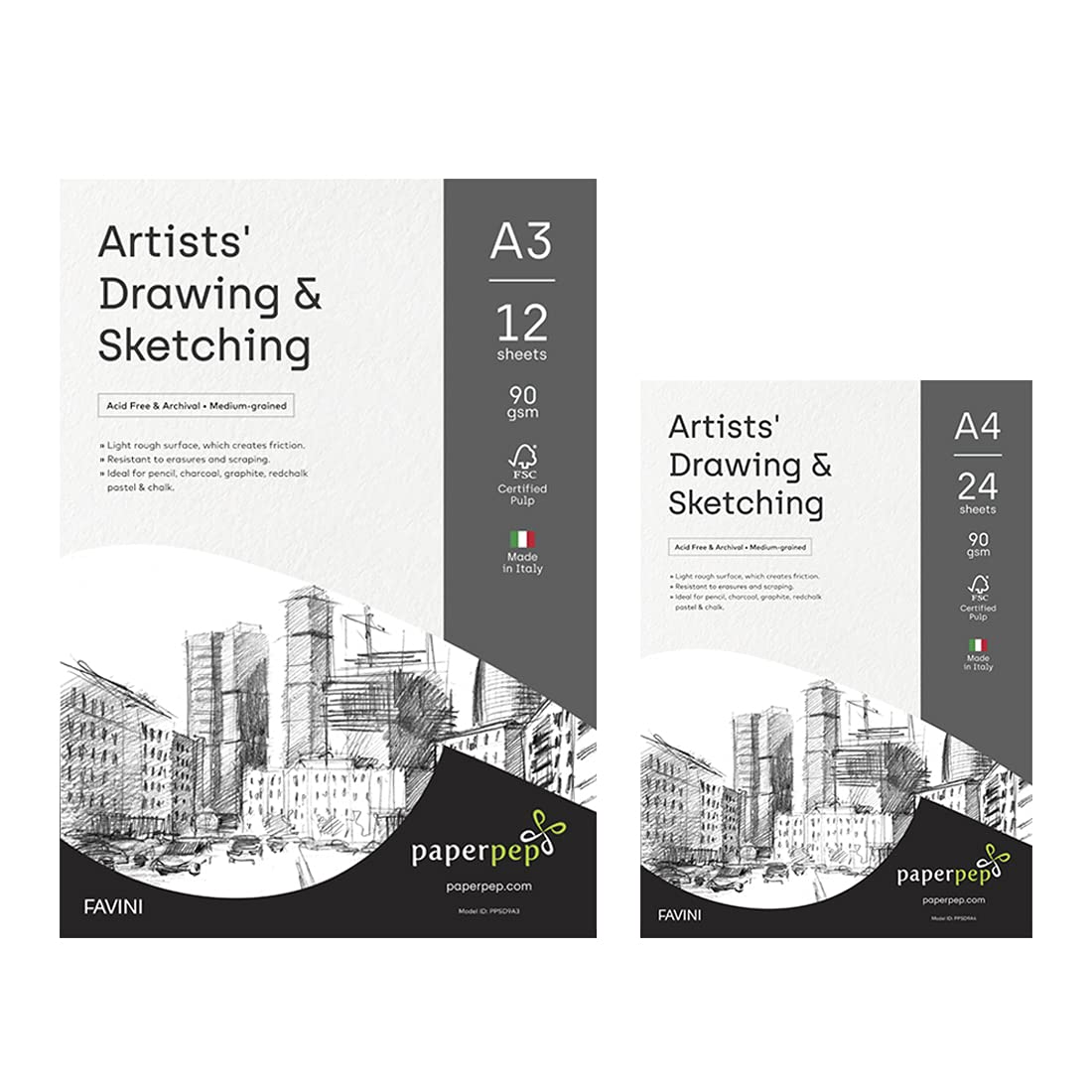 PaperPep Artists' Sketching & Drawing Paper 90GSM A3 (Pack of 12) + A4 (Pack of 24) for Sketching & Drawing with Pencil, Charcoal, Graphite,Pastel, Chalk for Artists' & Amateurs