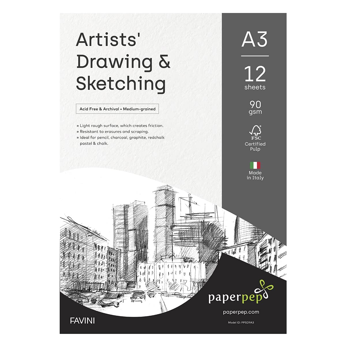 PaperPep Artists' Sketching & Drawing Paper 90GSM A3 Pack of 24 for Sketching & Drawing with Pencil, Charcoal, Graphite, redchalk Pastel, Chalk, Oil Pastel & Wax Crayon for Artists' & Amateurs