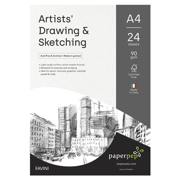 PaperPep Artists' Sketching & Drawing Paper 90GSM A4 Pack of 48 for Sketching & Drawing with Pencil, Charcoal, Graphite, redchalk Pastel, Chalk, Oil Pastel & Wax Crayon for Artists' & Amateurs