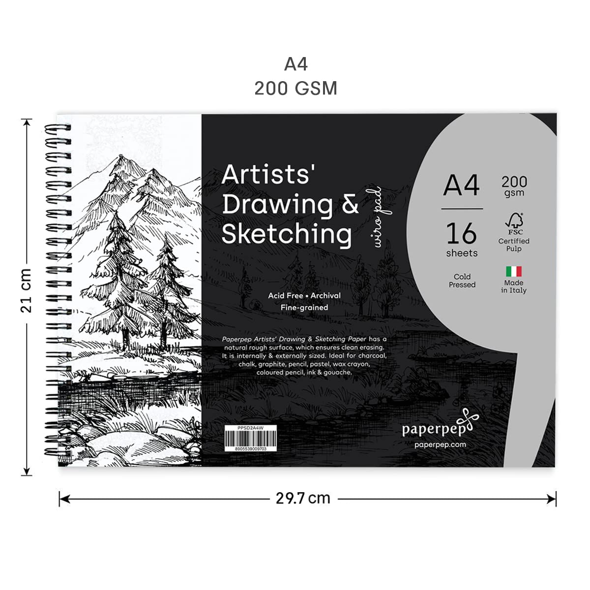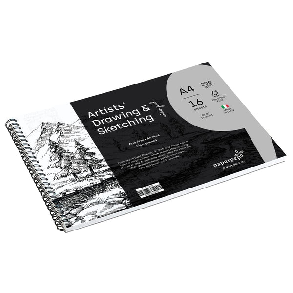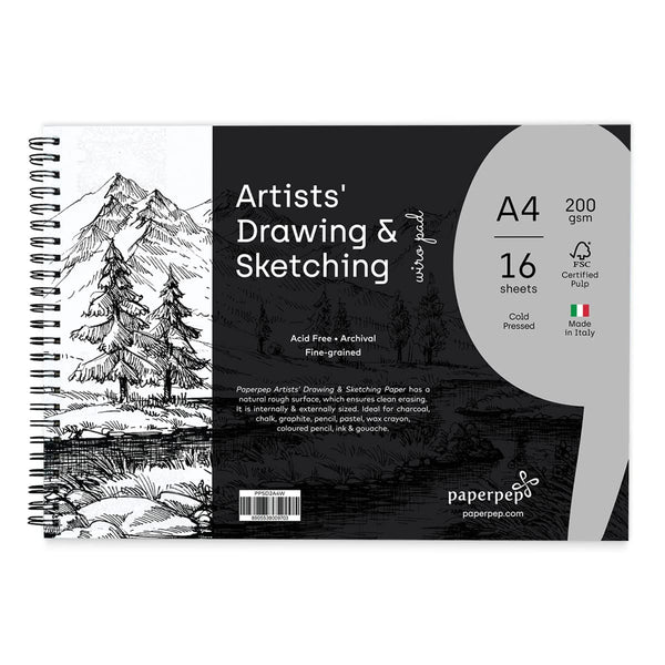 PaperPep Artists' Sketching & Drawing Wiro Pads 200GSM A4 Pack of 16 Sheets