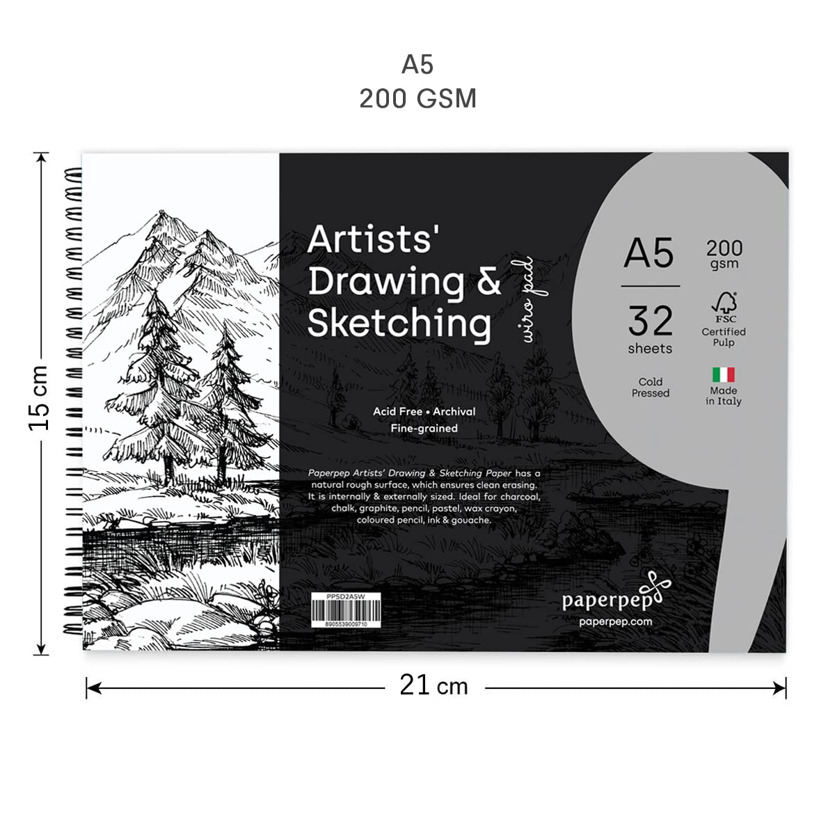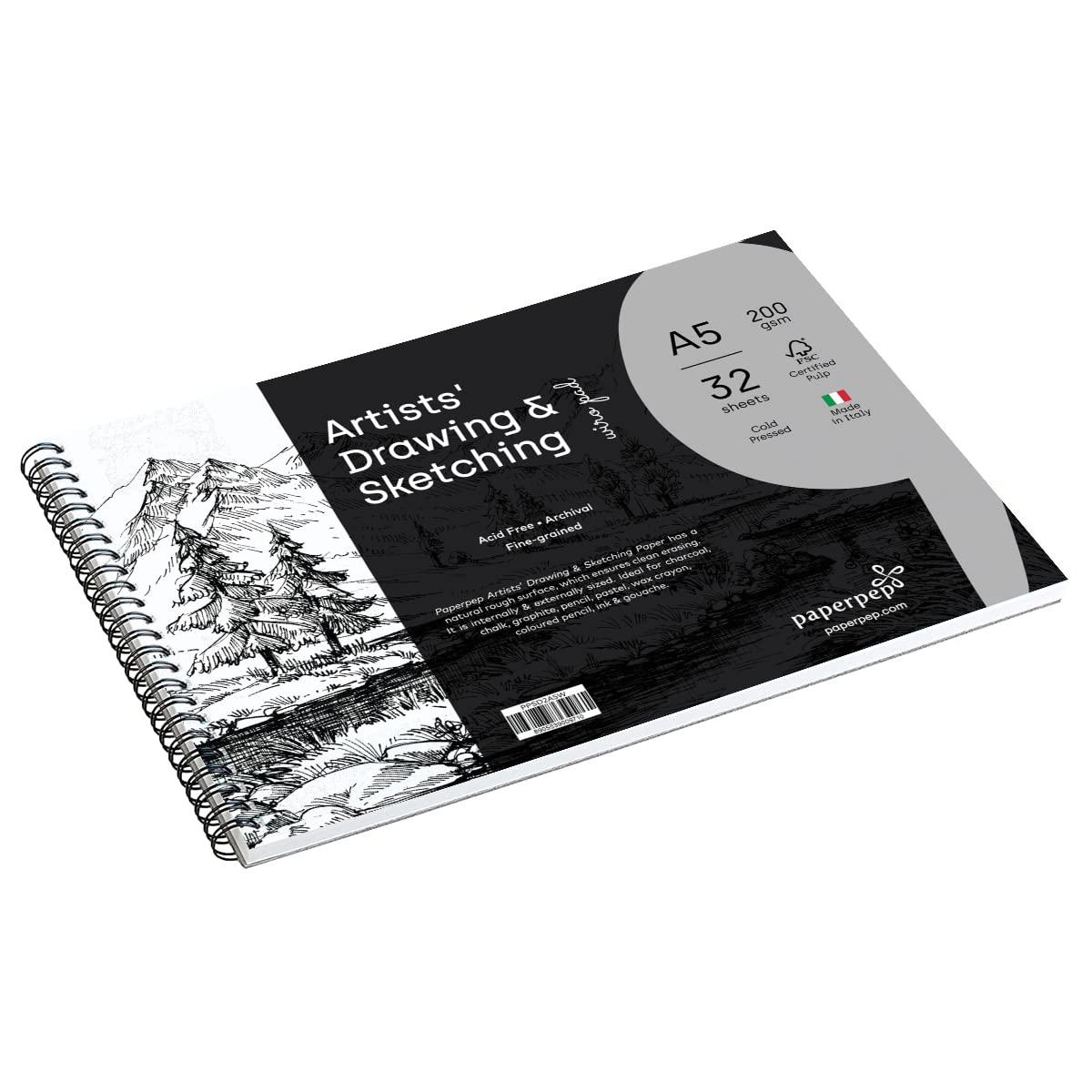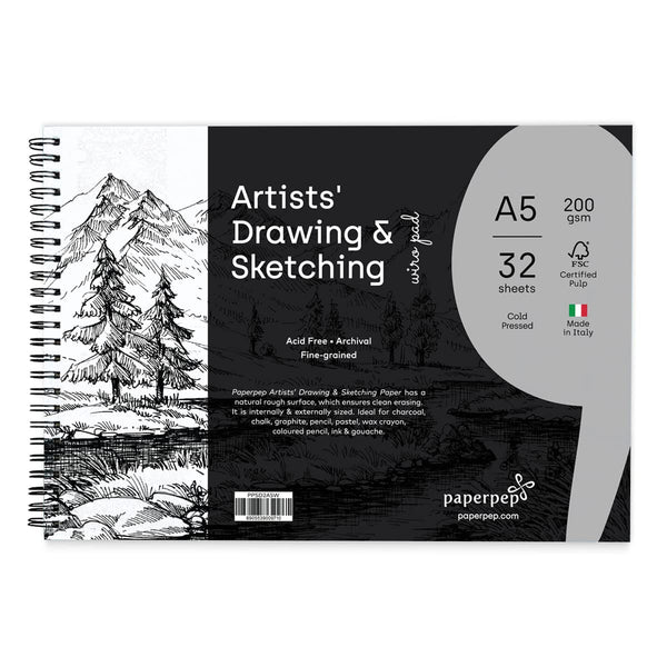 PaperPep Artists' Sketching & Drawing Wiro Pads 200GSM A5 Pack of 32 Sheets