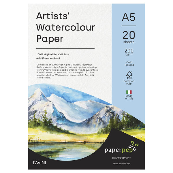 PaperPep Artists' Watercolour Paper 200GSM Cold Pressed A5 Pack of 40 for Watercolour, Gouache, Ink, Acrylic, Wet & Mixed Media, Art Painting, Drawing for Artists' & Amateurs