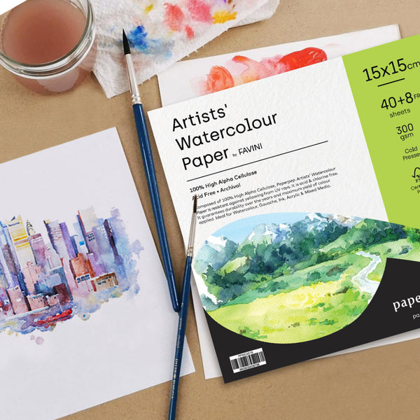 Paperpep Artists' Watercolour Paper 300Gsm Cold Pressed 15X15Cm Pack Of 40+8 Sheets Free
