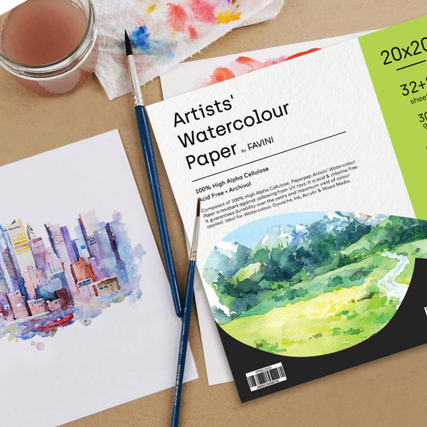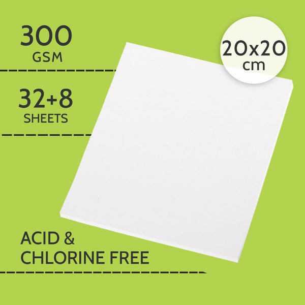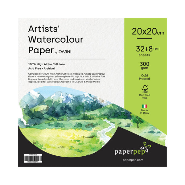 Paperpep Artists' Watercolour Paper 300Gsm Cold Pressed 20X20Cm Pack Of 32+8 Sheets Free
