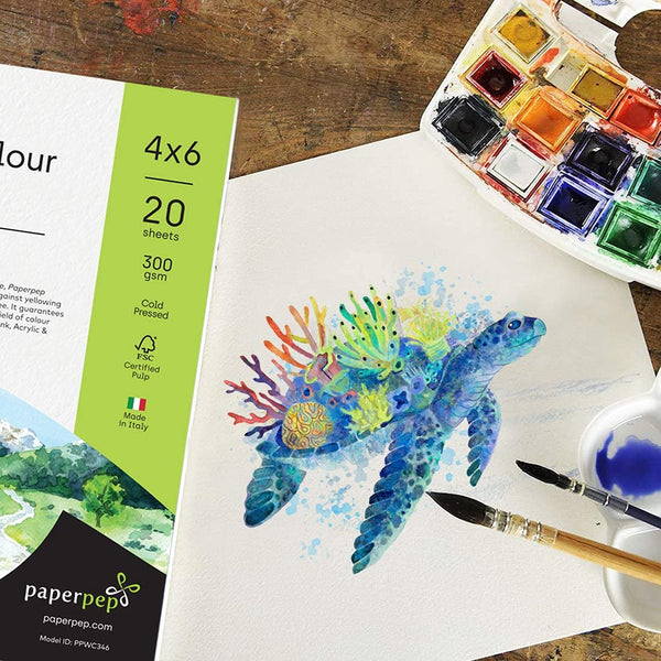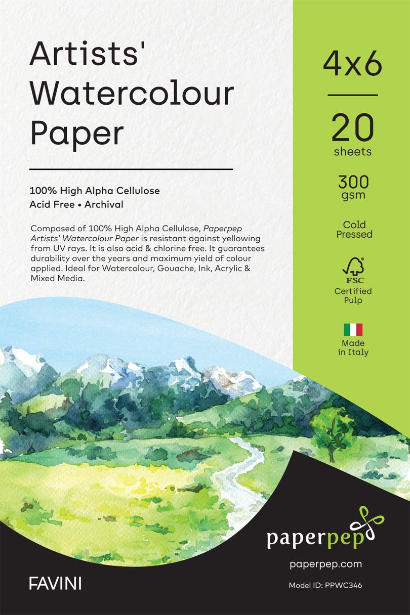 PaperPep Artists' Watercolour Paper 300GSM Cold Pressed 4"X6" Pack of 40 Sheets for Watercolour, Gouache, Ink, Acrylic, Wet & Mixed Media, Art Painting, Drawing for Artists' & Amateurs