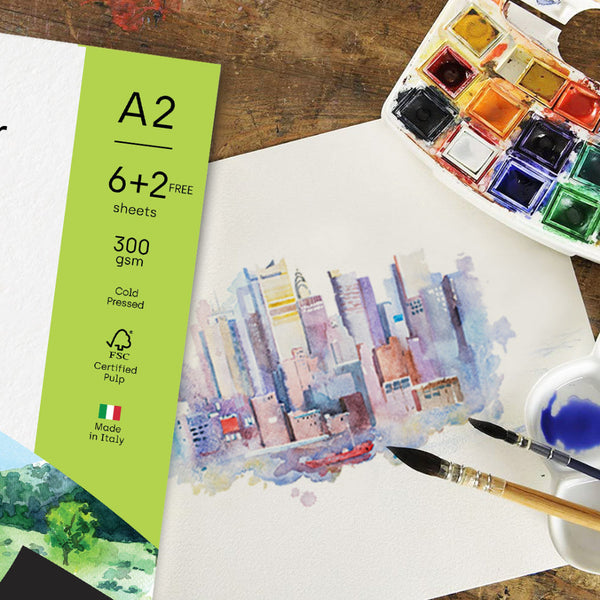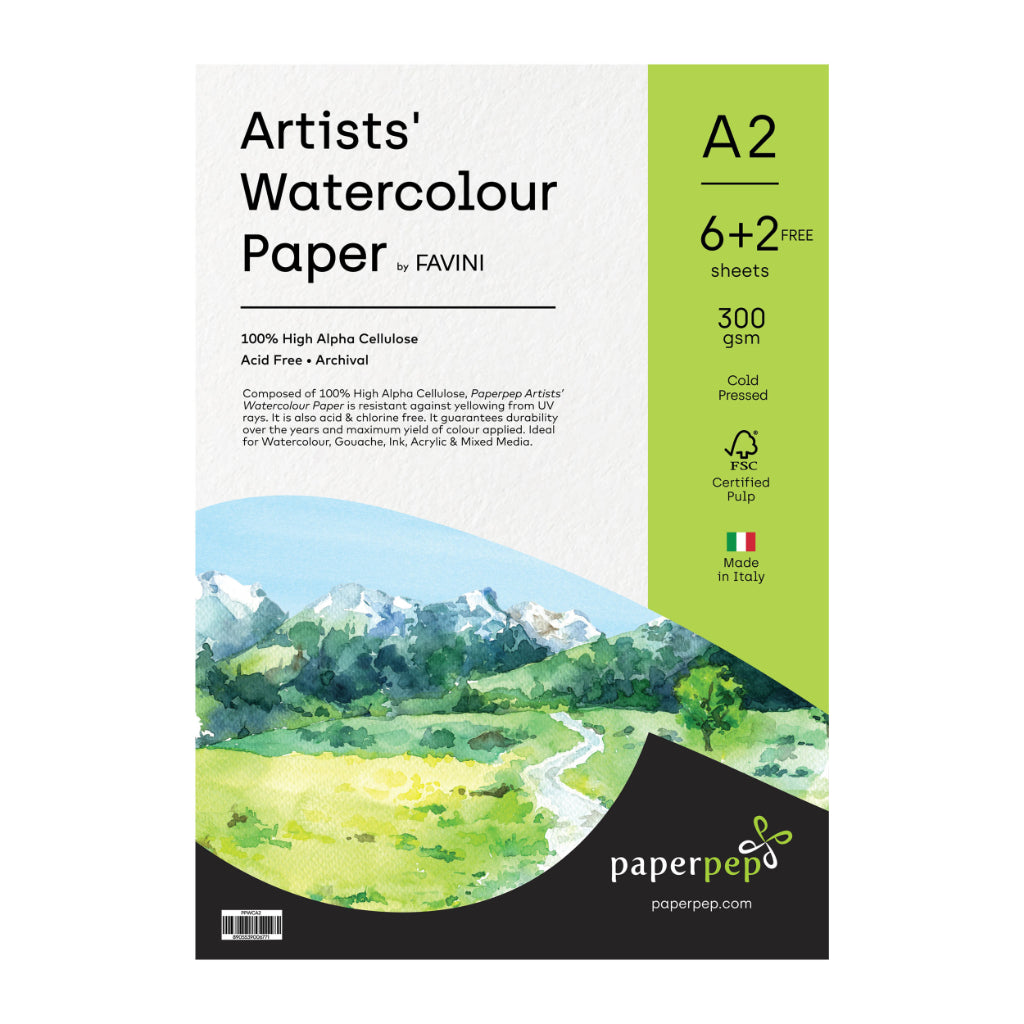 PaperPep Artists' Watercolour Paper 300GSM Cold Pressed A2 Pack of 6+2 Sheet Free