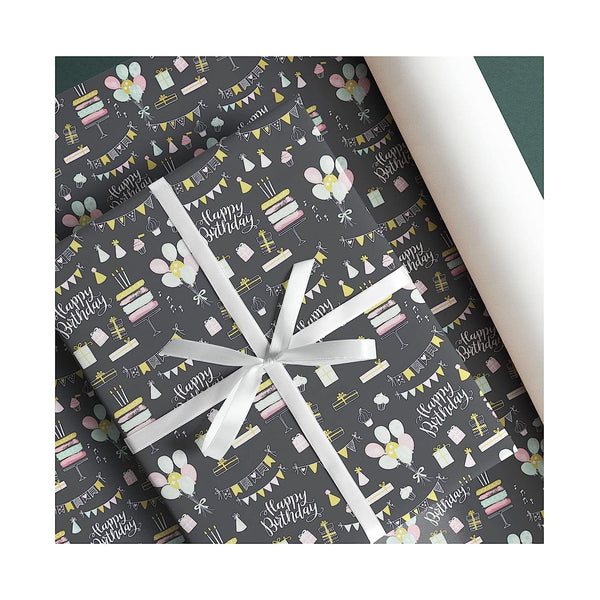 Paperpep Black Birthday Print Gift Wrapping Paper 19"X29" Pack Of 3 Sheets For Gift Packing Birthday, Anniversary, Diwali, Christmas, All Occasions & Events, Crafts, Return Gifts