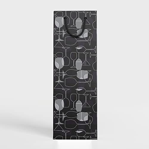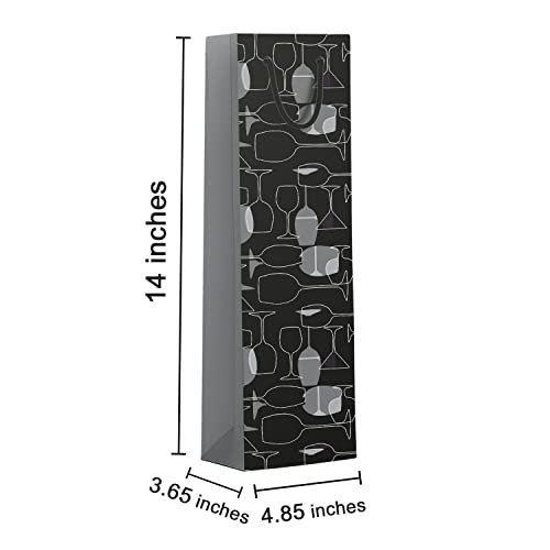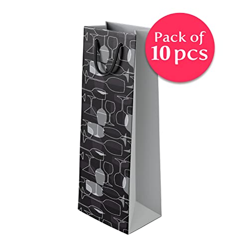PaperPep Black Glasses 14"X4.85"X3.65" Wine Paper Bag Pack of 10 | Wine Bottle Bags for Return Gifting, Birthday, Presents & Other Occasion