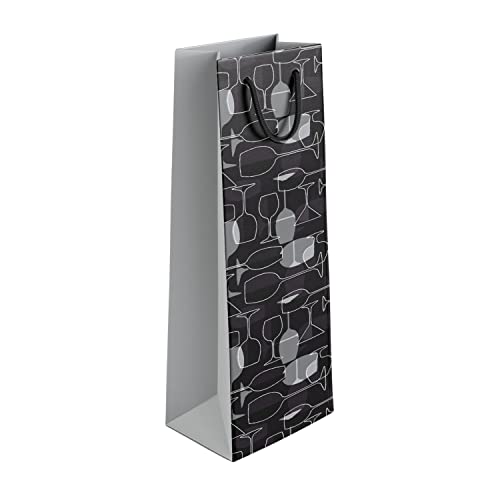 PaperPep Black Glasses 14"X4.85"X3.65" Wine Paper Bag Pack of 6 | Wine Bottle Bags for Return Gifting, Birthday, Presents & Other Occasion