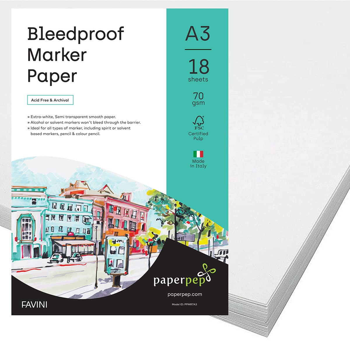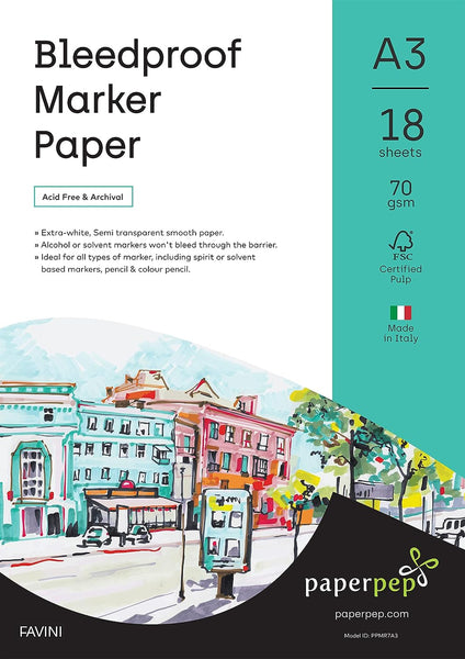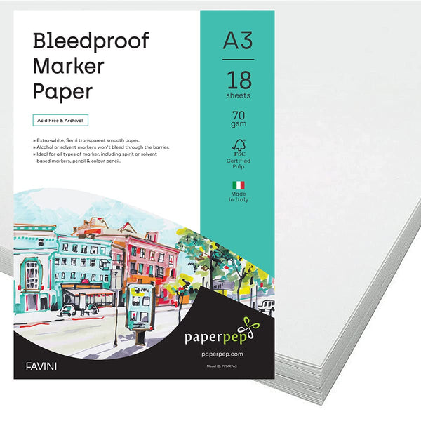 PaperPep Bleedproof Marker Paper 70GSM A3 Pack of 36 for Spirit or Solvent Based Markers, Pencil & Colour Pencil, Illustration, Design & Manga for Artists' & Amateurs