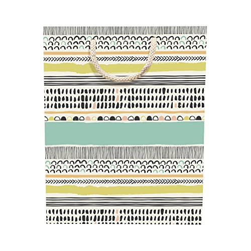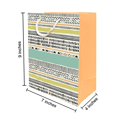 PaperPep Cream Green Brush Strokes Print 9"X7"X4" Gift Paper Bag Pack of 10 | Gift Bags for Return Gifts, Presents, Weddings, Birthday, Holiday Presents, Celebrations