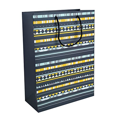 PaperPep Dark Blue Lines Print 13.5"X10"X4.5" Paper Gift Bag Pack of 1 | Gift Bags For Return Gifts, Presents, Weddings, Birthday, Holiday Presents, Celebrations