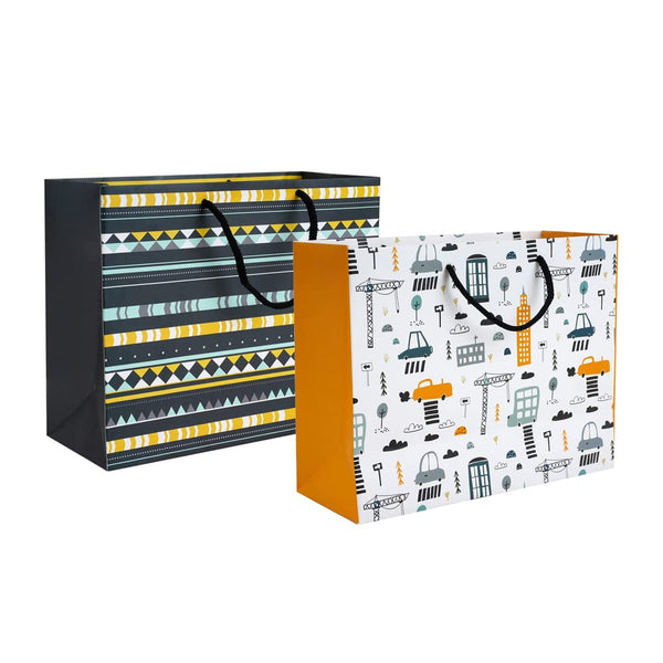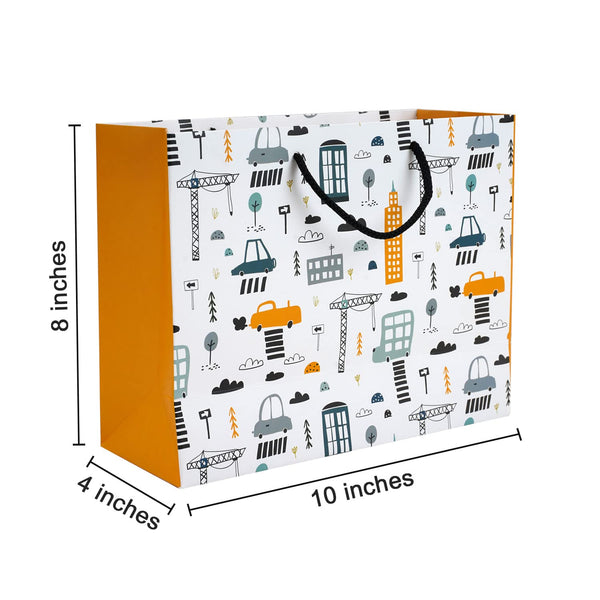 PaperPep Dark Blue Lines & White Car Print 10"X4"X8" Gift Paper Bag Pack of 6 for Return Gifts, Presents, Weddings, Birthday, Holiday Presents, Celebrations