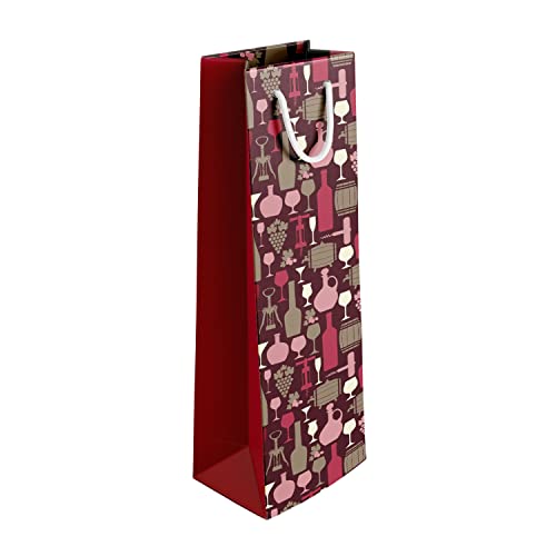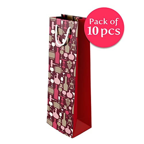 PaperPep Maroon Barrel & Bottles 14"X4.85"X3.65" Wine Paper Bag Pack of 10 | Wine Bottle Bags for Return Gifting, Birthday, Presents & Other Occasion
