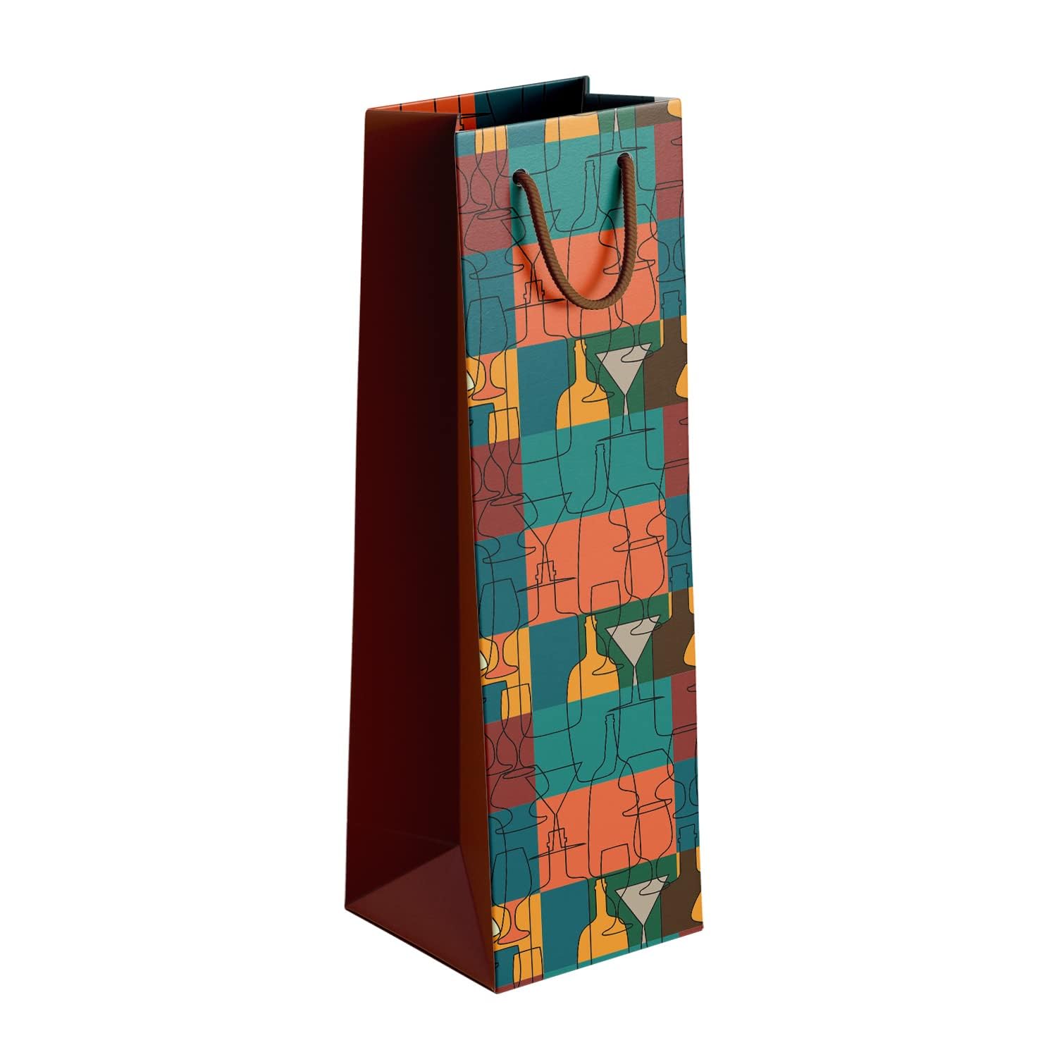 PaperPep Multicolor Barrel & Bottles 14"X4.85"X3.65" Wine Paper Bag Pack of 1