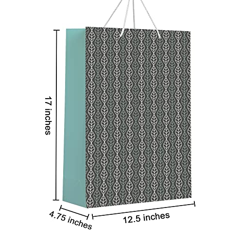 PaperPep Vertical Leaves Print 17"X12.5"X4.75" Gift Paper Bag Pack of 1 | Gift Bags for Return Gifts, Presents, Weddings, Birthday, Holiday Presents, Celebrations
