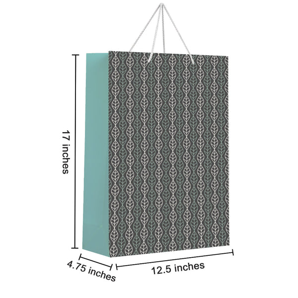 Paperpep Vertical Leaves Print 17"X12.5"X4.75" Gift Paper Bag Pack Of 6 | Gift Bags For Return Gifts, Presents, Weddings, Birthday, Holiday Presents, Celebrations
