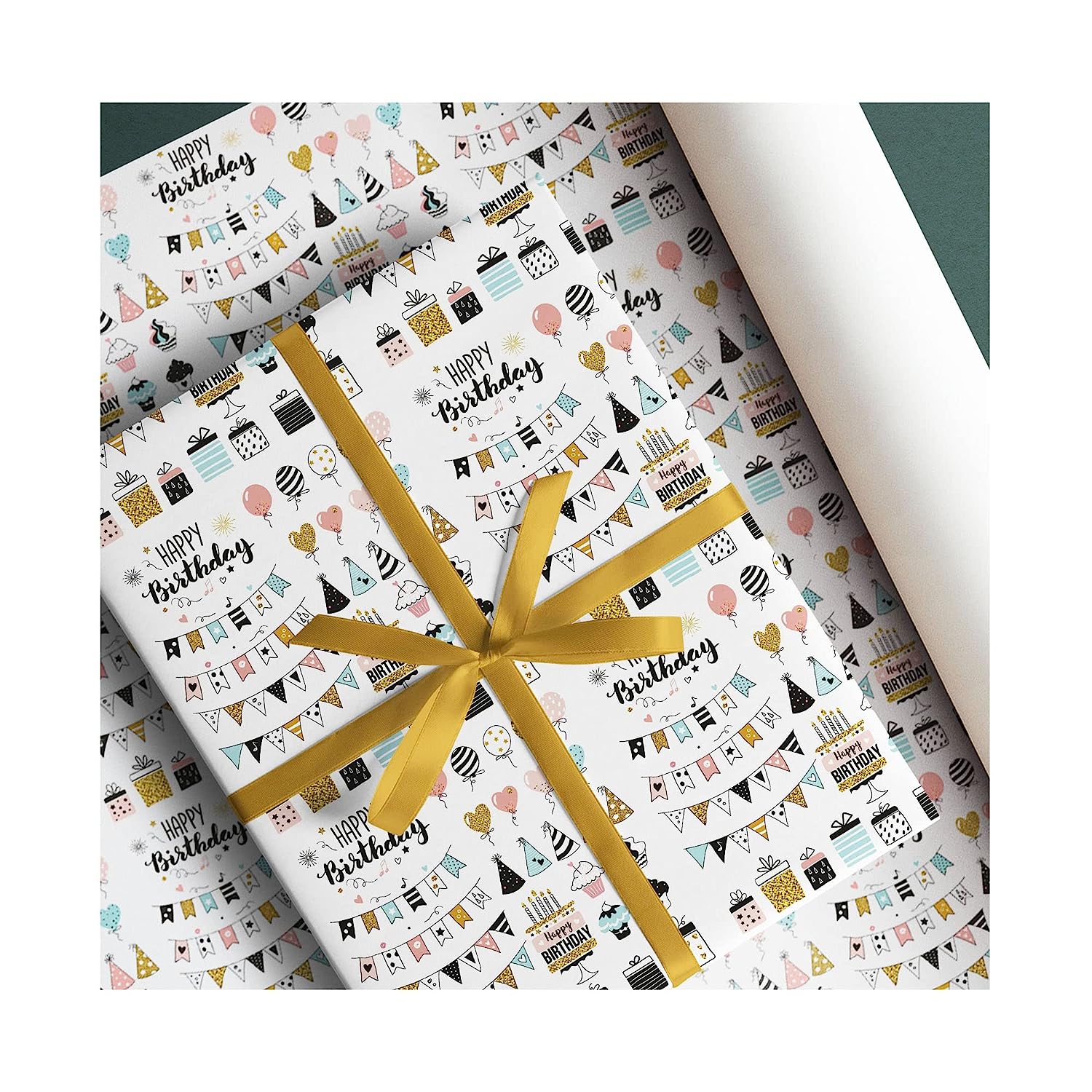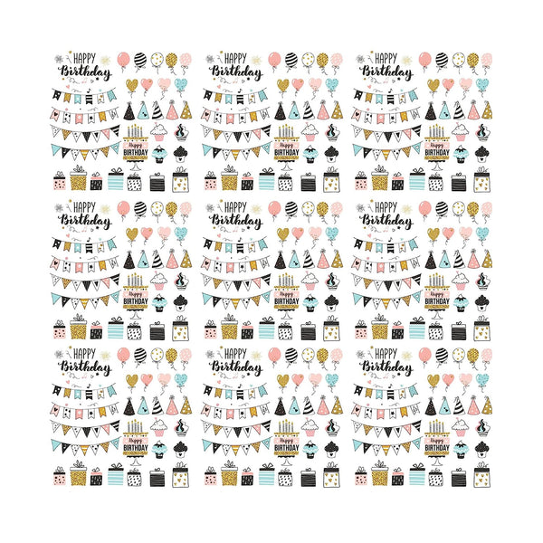 Paperpep White Birthday Print Gift Wrapping Paper 19"X29" Pack Of 3 Sheets For Gift Packing Birthday, Anniversary, Diwali, Christmas, All Occasions & Events, Crafts, Return Gifts