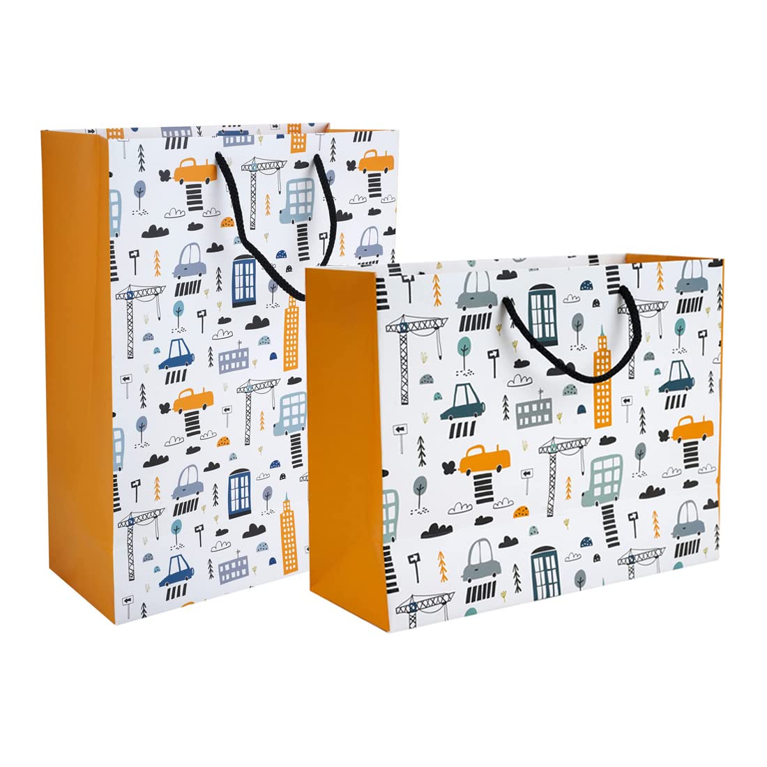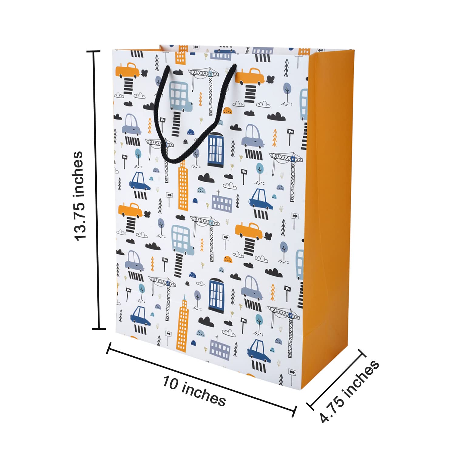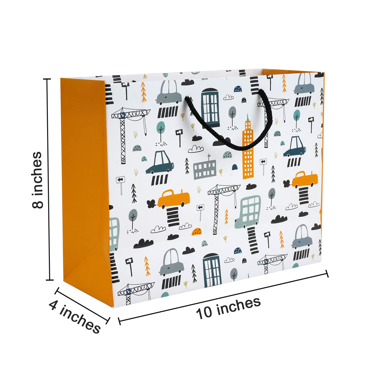 PaperPep White Car Print 10"X4.75"X13.75" & 10"X4"X8" Gift Paper Bag Pack of 6 for Return Gifts, Presents, Weddings, Birthday, Holiday Presents, Celebrations