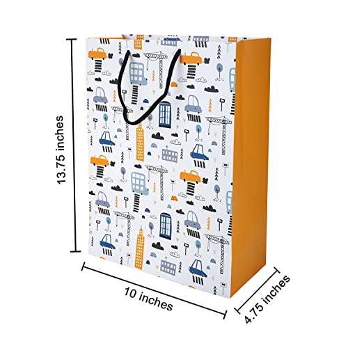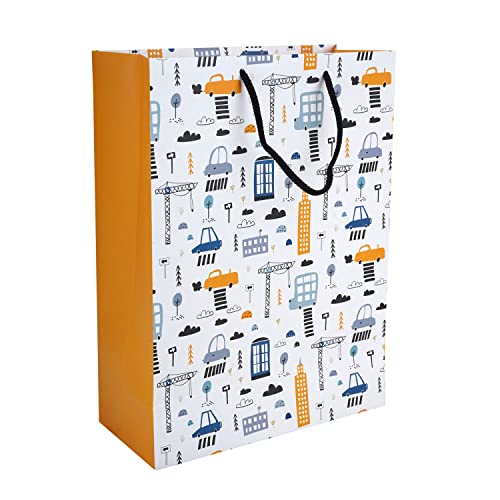 PaperPep White Car Print 13.5"X10"X4.5" Paper Gift Bag Pack of 1 | Gift Bags For Return Gifts, Presents, Weddings, Birthday, Holiday Presents, Celebrations