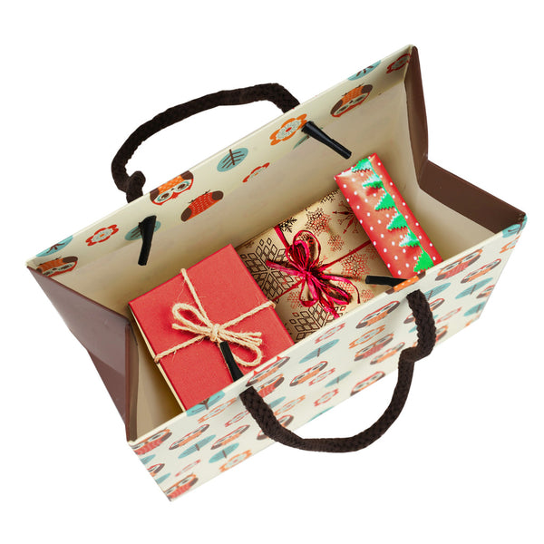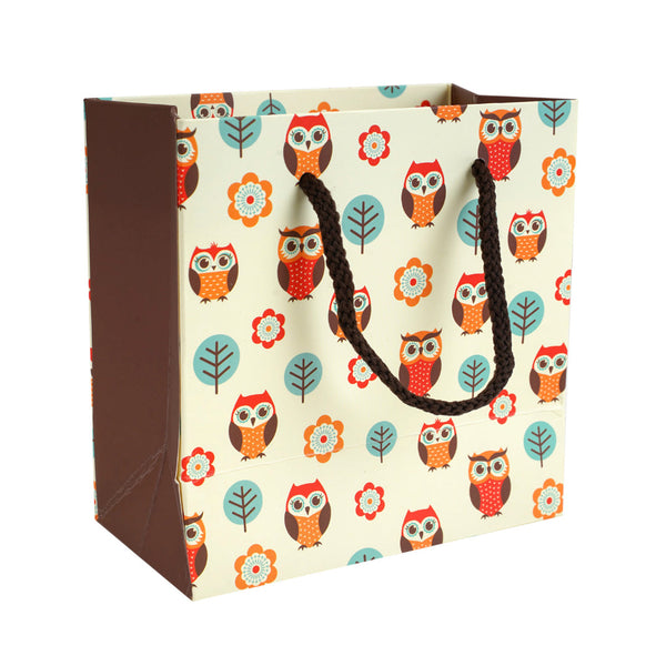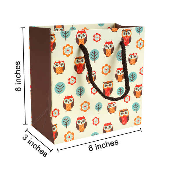 Paperpep Yellow Owl Print 6"X3"X6" Gift Paper Bag Pack Of 12 For Return Gifts, Presents, Weddings, Birthday, Holiday Presents, Celebrations