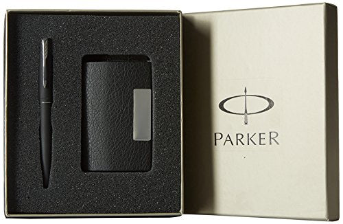 Parker Frontier Matte Black Chrome Trim Fountain Pen With Card Holder Gift Set - Blue Ink, Pack Of 1
