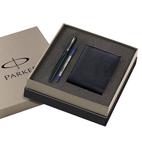 Parker Frontier Matte Black Gold Trim Roller Ball Pen With Wallet Gift Set - Blue Ink, Pack Of 1