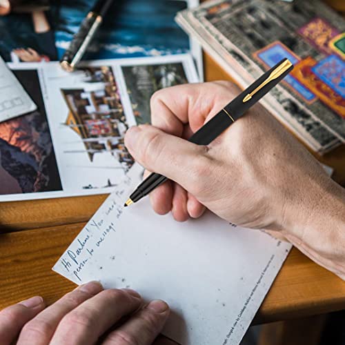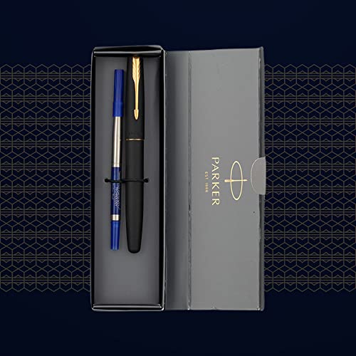 Parker Frontier Matte Black Gold Trim Roller Ball Pen - Blue Ink, Pack of 1